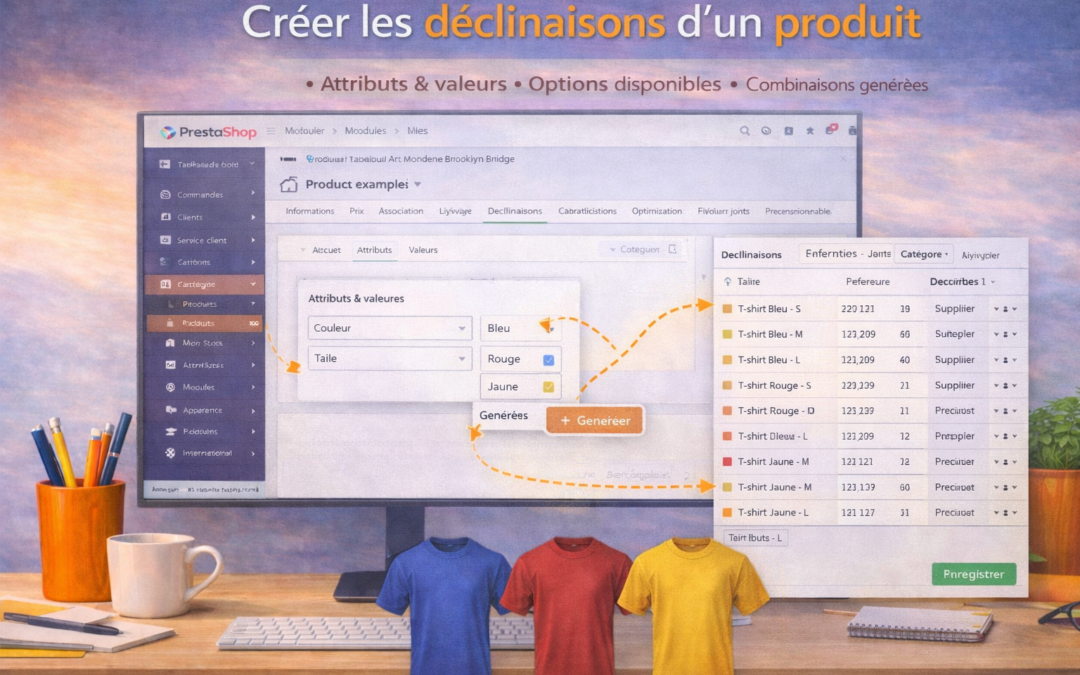 Les déclinaisons permettent de proposer plusieurs variantes d’un même produit (taille, couleur, modèle, etc.) sans créer plusieurs fiches produits.