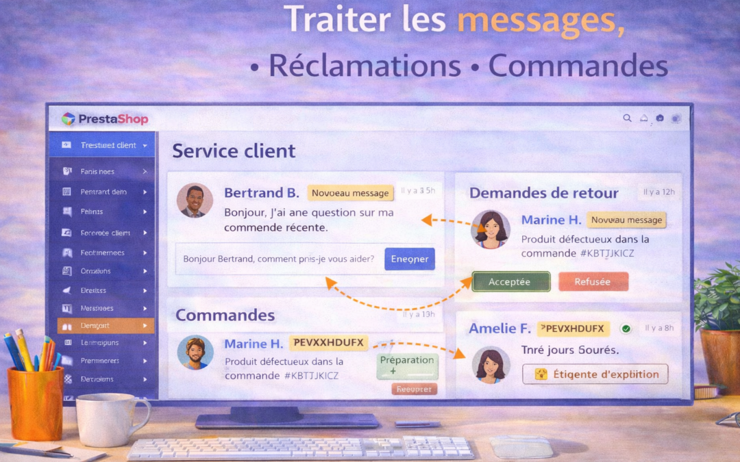 Le traitement des messages, des réclamations et des commandes permet d’assurer le suivi client et la bonne gestion des ventes réalisées sur la boutique.