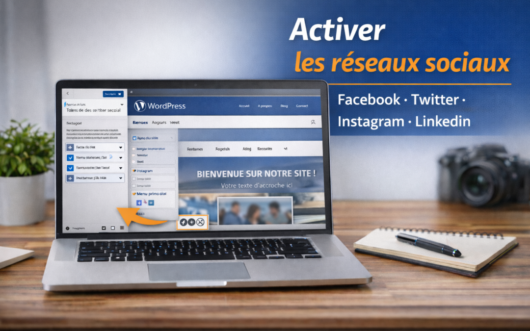 L’activation des réseaux sociaux permet d’afficher des liens vers les pages sociales de l’entreprise (Facebook, Instagram, LinkedIn, etc.) afin de faciliter la visibilité et l’accès aux profils depuis le site.
