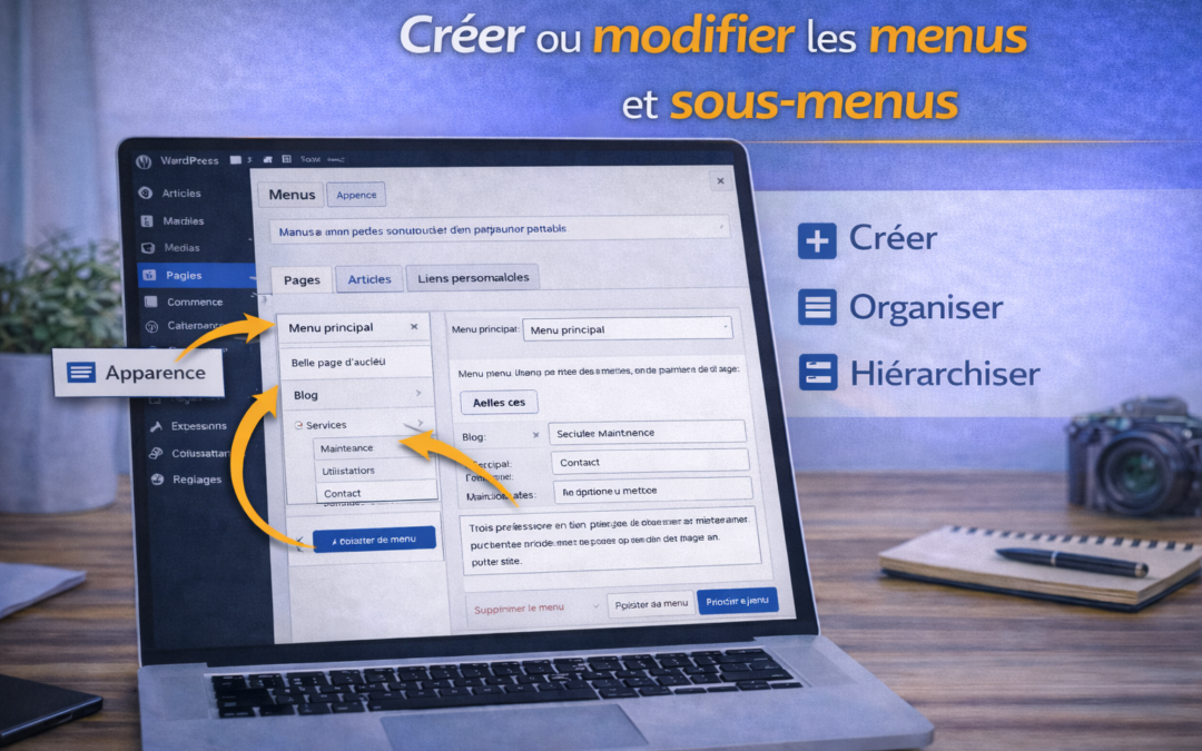Les menus permettent d’organiser la navigation du site en regroupant les pages, catégories ou liens dans une structure claire.