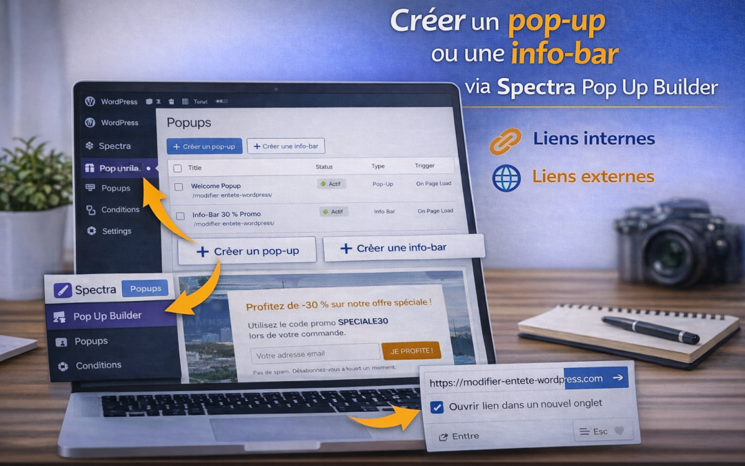 Un pop-up ou une info-bar permet d’afficher un message important sur le site (information, promotion, alerte, inscription) sans modifier le contenu principal des pages.