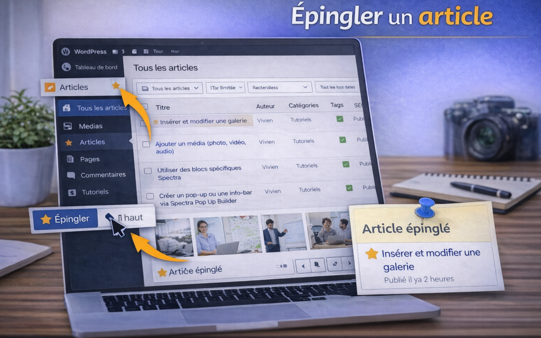 Épingler un article permet de le mettre en avant afin qu’il reste affiché en priorité dans la liste des articles, généralement en haut du blog.