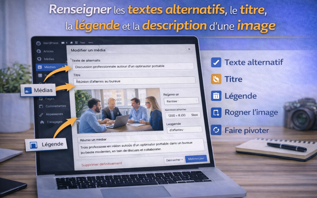 Les informations associées à une image permettent d’améliorer l’accessibilité, la compréhension du contenu et l’organisation des médias dans le site.